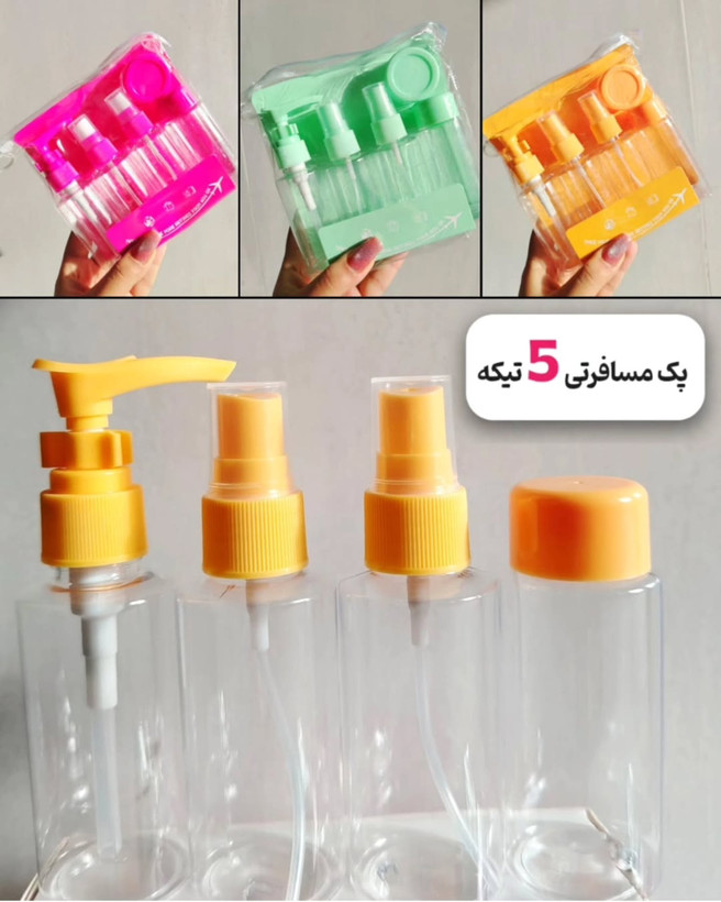پک که مسافرتی ‼ _________________________ برای نگهداری مواد آرایشی از جمله کرم پودر و انواع شستشو دهنده پوست و مو و محصولات مراقبتی پوستی از جمله تونر آبرسان شاپو و ماسک مو و سبک و قابل حمل جنس: پلاستیکی به همراه کیف کارآمد شامل یک عدد بطری پمپی دو عدد بطری اسپری یک عدد بطری درب دار دو عدد ظرف کوچک کرم 10 گرمی یک عدد اپلیکاتور ___________________ ارسال به مغازه بندر گناوه پاساژ گرگین پور ـ پلاک 100 لاین دوم